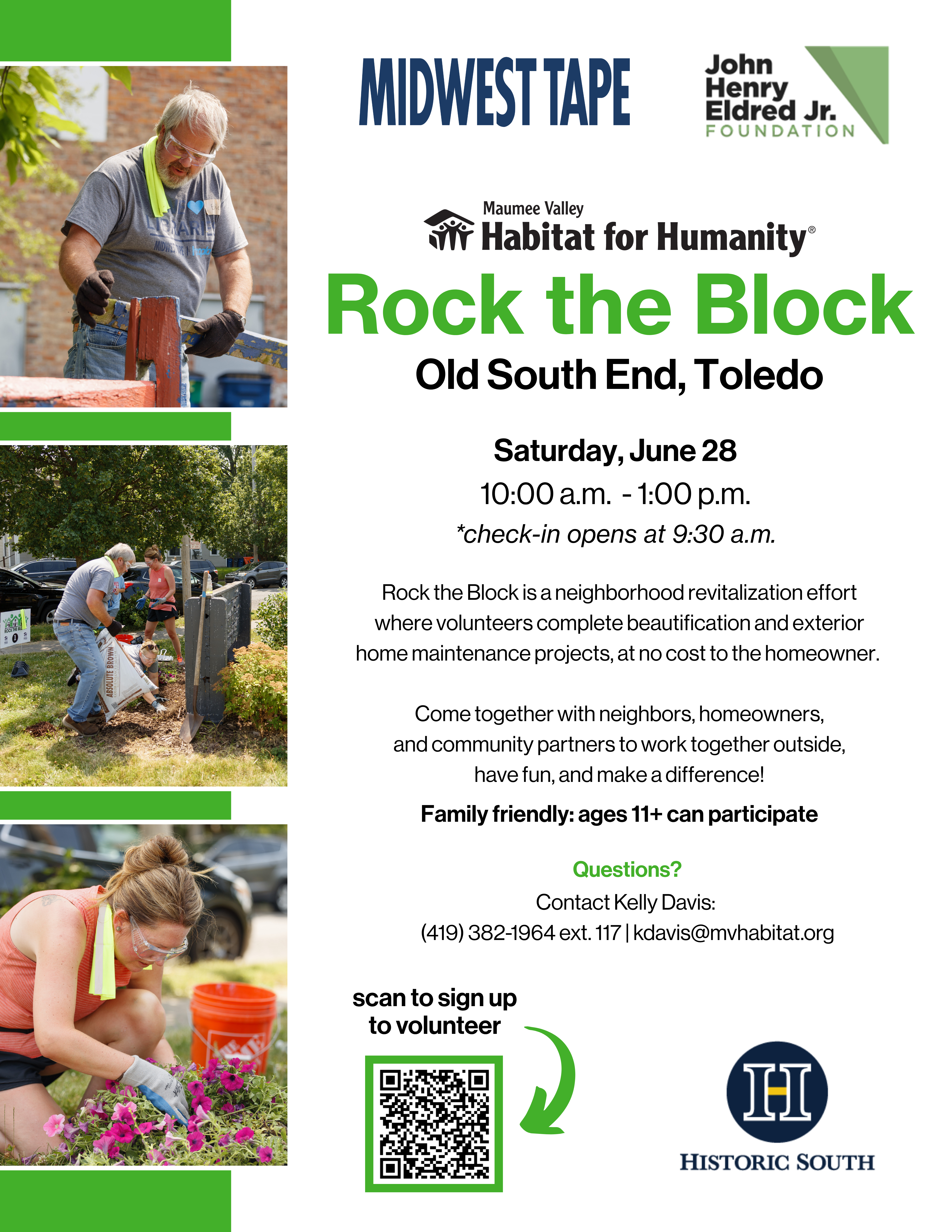 Rock the Block is a neighborhood revitilization effort where volunteers complete beautification and exterior home maintenance projects, at no cost to the homeowner.